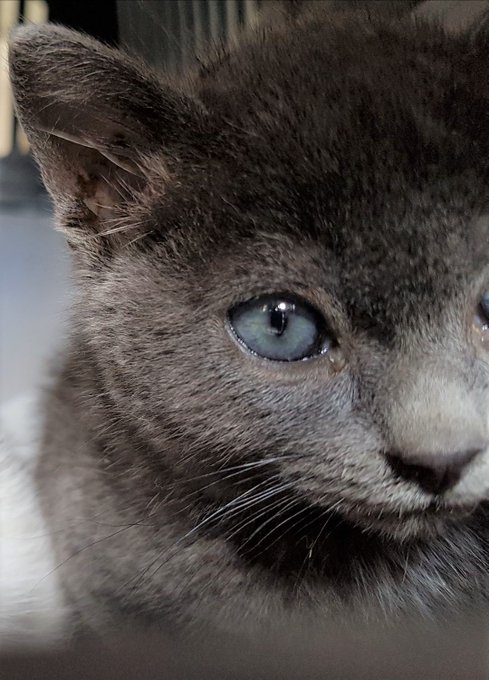 Gatito azul ruso de mes y medio (no sabemos el sexo todavía) que busca familia adoptiva. Está en #Antequera (Málaga) pero puede viajar a otras provincias.