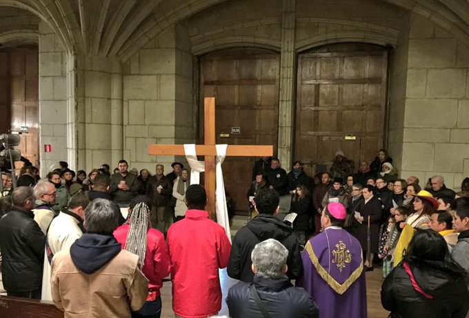 #ViaCrucis del Mundo presidido por el @ObispodeVitoria en la Catedral de Santa María de Vitoria. Hemos recordado la #Pasión de #Cristo con la #cruz como muestra de su #amor hacia los hombres y mujeres de todos los tiempos y lugares. #VitoriaGasteiz #SemanaSantaVG pic.twitter.com/0sENoa3oIJ